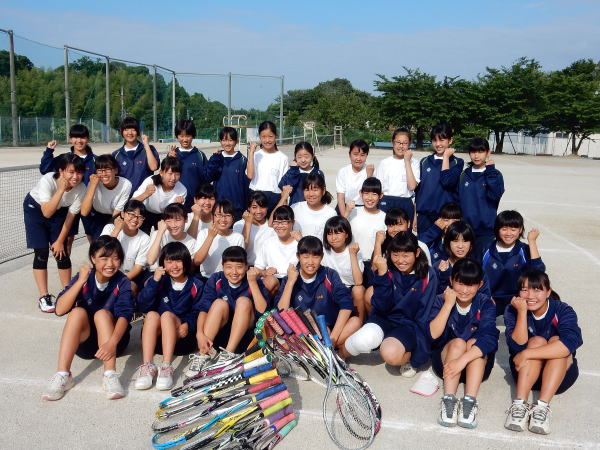 | 男子テニス部は3年生6名、2年生12名、そして新しく入部した1年生5人で活動しています。3年生は総体に向けて日々努力し、しっかりと上達しています。2年生も腕をあげ、3年生に迫る部員も出てきて、これから楽しみです。1年生はとても一生懸命部活動に取り組んでいます。良い結果が出るように頑張ります。 | |||||