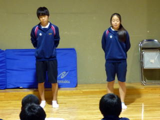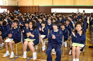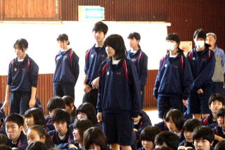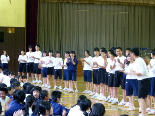 ![]() ![]() ![]() ![]() 女子1回戦 対 大網中 0−2 負 ![]() ![]() ![]() ![]() 男子1回戦 対 君津中 2−1 勝 2回戦 対 金ケ作中 0−2 負 全校集会(6校時表彰関係) ![]() ![]() ![]() ![]() ![]() ![]() ![]() ![]() 春の葛南大会や記録会で優秀な成績を収めた陸上部、バドミントン部、テニス部の生徒達を紹介しました。 |