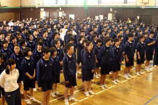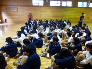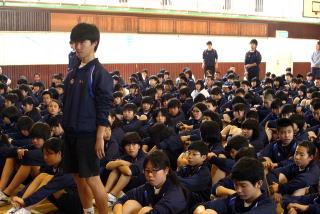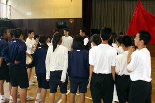 ![]() ![]() ![]() ![]() ![]() ![]() ![]() ![]() 体育祭の応援団の決起集会が体育館で行われました。 団長には、紅組・松田君、白組・秋元君が選ばれました。なお、クラスの色分けは以下の通りです。