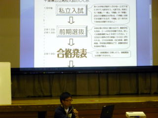 | 3年生はこれからの進路について、進路指導主任より説明がありました。 | |