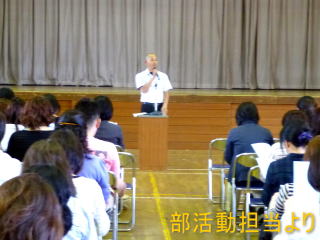 授業参観![]() ![]() ![]() ![]() ![]() ![]() ![]() ![]() ![]() ![]() ![]() ![]() ![]() ![]() ![]() ![]() ![]() ![]() ![]() ![]() 部活動保護者会全体会 ![]() ![]() ![]() ![]() 懇談会 ![]() ![]() ![]() ![]() ![]() ![]() ![]() ![]() 部活動保護者会への参加者は208名本日、5校時に今年度始めての授業参観と、部活動保護者会を実施しました。授業参観では生徒達も、最初は緊張した授業態度でしたが、後半は伸び伸びとした活動をしていました。また、部活動保護者会には208名の保護者の方がお越しになりました。 −全体会校長挨拶(抜粋)− 本日はお忙しいところを部活動保護者会に出席していただきましてありがとうございます。最初に、私が四中に来て驚いたことは、部活動をしている生徒達の挨拶と元気な姿です。これはおそらく他の中学校では見られないもので、私自身、自慢の生徒達です。 部活動の根本的な意味は、「生徒の人間形成」であり、「学年や学級の枠を超えて、文化やスポーツに親しむ態度を育てる」ことことなど、いわば知、徳、体の三要素が育っていき、大切な活動であると思います。 四中はここ3,4年の間に、若い先生が入ってきたこともあって、部活動が活発になってきました。 そこで部活動を行う上での学校で注意している点をあげたいと思います。 一つは、熱中症や脱水症状、その他の事故や障害、また試合に行く時の交通事故について十分配慮しています。 二つ目として、大会に臨む姿勢のことです。「勝利至上主義」、勝つことはもちろん大切ですが、それが最終目的ではないということです。子ども達と指導者の心が一つになったときには、勝ち負けの結果にかかわらず、それ以上に大きな感動につながっていくと思うのです。部活動での人間関係にも我々は十分注意を払っていくつもりです。よろしくお願いいたします。 最後になりましたが、どうか今年度も、保護者の皆さん同士が、お互いに仲良くしていただいて、鎌ケ谷四中の部活動を支えていただきたいと思います。 以上、簡単ではございますが、冒頭の挨拶といたします。 |